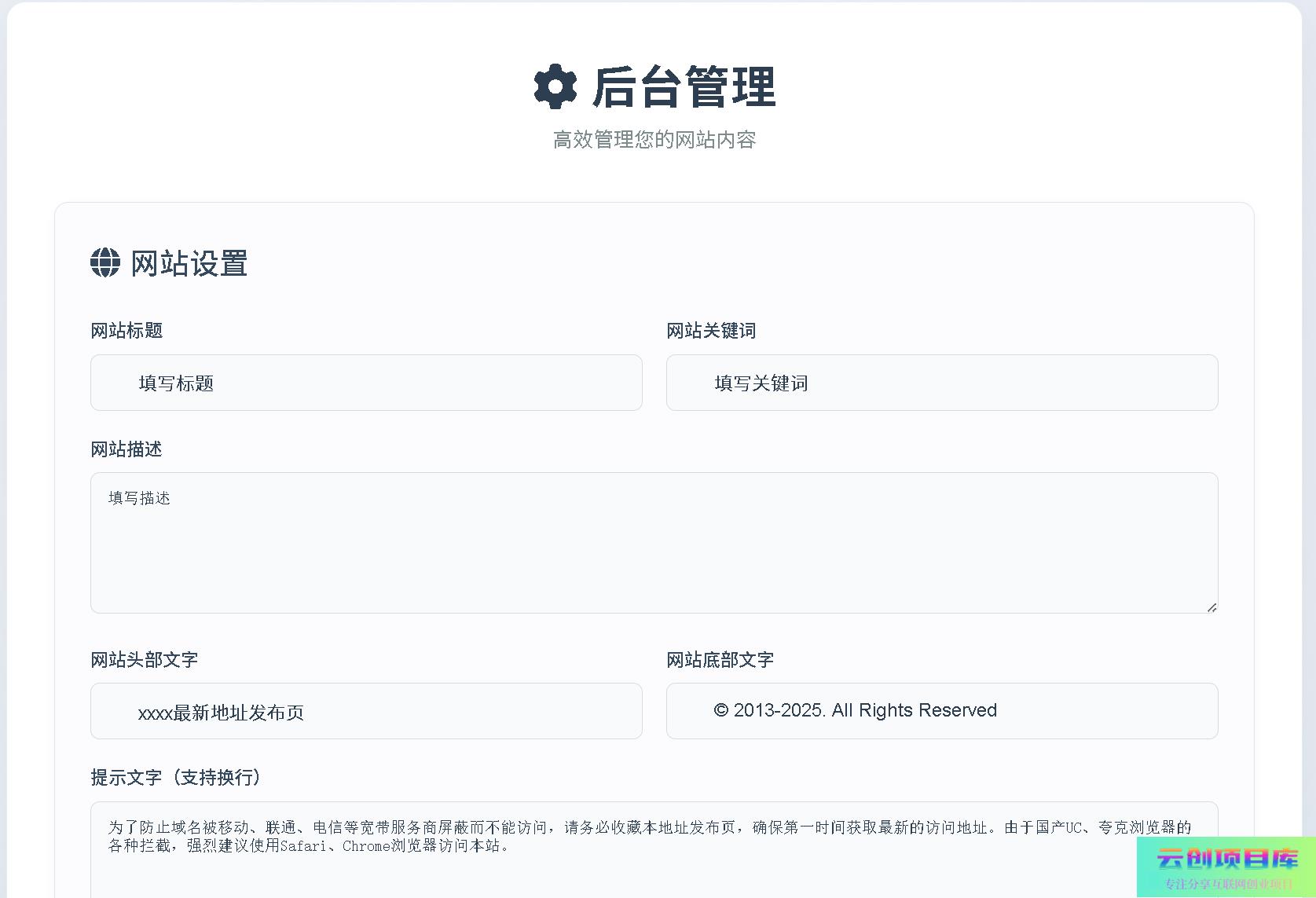 提供后台管理,可轻松修改标题、链接和邮箱信息。