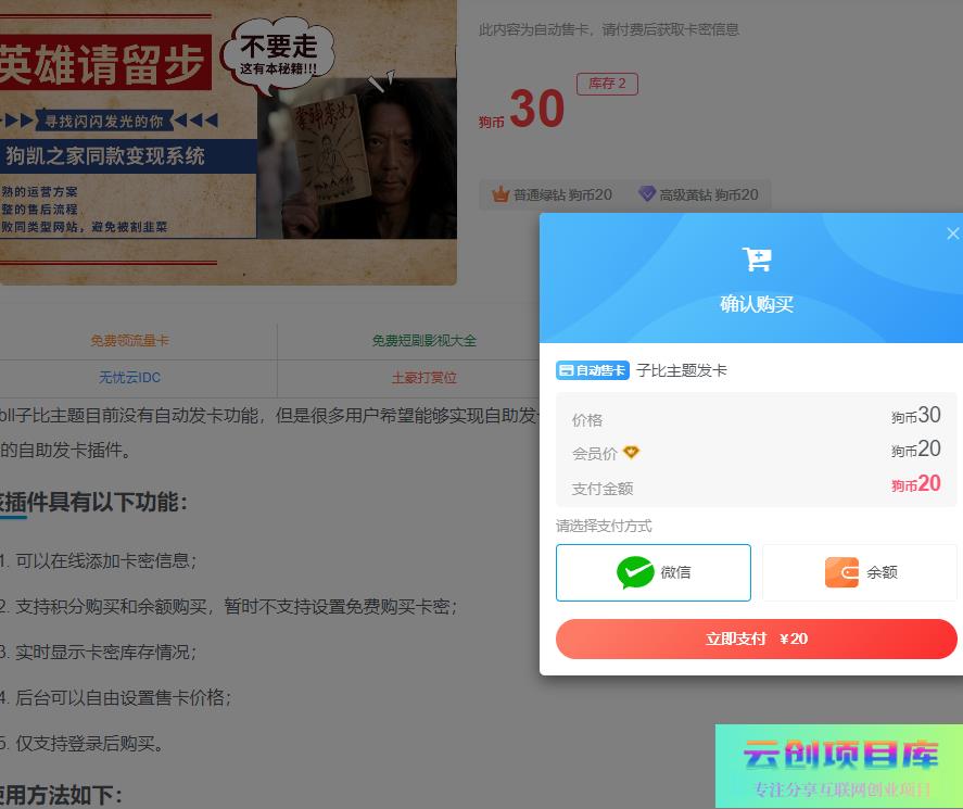 为了满足这一需求,我们今天向大家介绍一款某大佬定制的自助发卡插件。