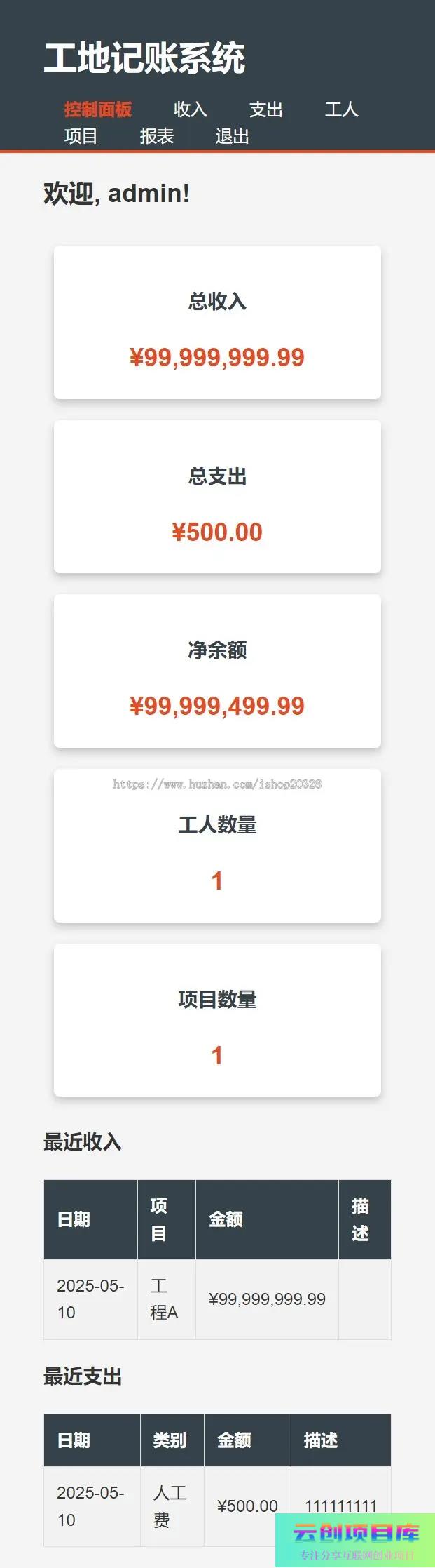 工地记账系统PHP源码自适应手机端界面。代码全开源,支持二次开发,内附安装说明。